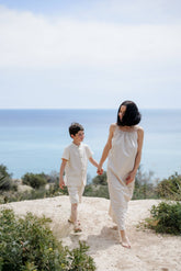 Lightweight shorts made from soft, organic muslin cotton – breathable and pleasant to the touch, ideal for warm days. An elastic waistband ensures a comfortable fit, while two pockets hidden in the side seams add practicality.