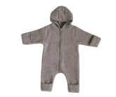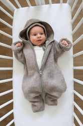 Wrap your little one in the ultimate in natural comfort. This adorable merino wool baby overall combines thoughtful design with the remarkable benefits of pure merino- the perfect layer of warmth and softness for babies. The subtle taupe tone pairs beautifully with everything- add a colorful hat for a playful touch.