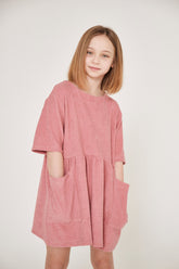 Crafted with care for our children, our dress in a beautiful pink color brings together cozy comfort and playful elegance. Made from cotton terry fabric in a beautiful shade of beige. A boxy shape, charming design, and two front patch pockets. This dress is perfect for spring outfits and long summer adventures. Its versatile cut makes it easy to style for any occasion.