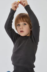 Dive into comfort with our Longsleeve in a dark grey color. Crafted from 100% organic cotton, this shirt is not just a wardrobe essential; it's a soft embrace for your child's skin. The slim fit and timeless design make it perfect for layering or wearing solo, ensuring your little one stays stylish and cozy all day long.