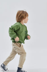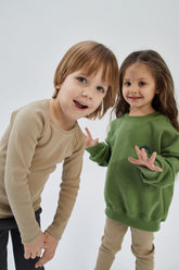Simple, cozy, and ready for adventure! This green children’s sweatshirt is crafted from a soft, durable cotton blend to keep your little one comfortable and stylish all day. With a relaxed, kid-friendly fit and easy-to-wear pullover design, it’s perfect for playtime, outings, and everything in between. The timeless shade and minimalist look make it easy to mix and match with any outfit, while the breathable material is ideal for layering in every season. Quality-made in Europe, this sweatshirt combines style with everyday comfort for your little explorer.