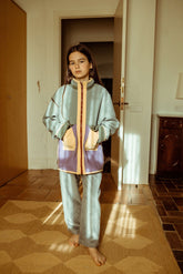 Eine kuschelige, strapazierfähige Jacke, die mit deinem Kind mitwächst. Hergestellt aus 100 % Öko-Tex-zertifizierter Wolle mit weichem Baumwollfutter bietet sie natürliche Wärme und Komfort für kühlere Tage. Der Oversize-Schnitt sorgt für eine entspannte Passform, die mehrere Saisons hält – krempele einfach die Ärmel hoch, wenn dein Kind kleiner ist, und krempele sie herunter, wenn es wächst.