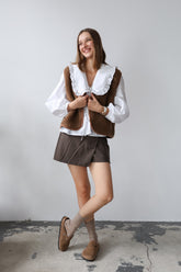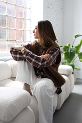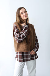 Eine übergrosse Weste aus weicher Merinowolle, die für ihre thermoregulierenden Eigenschaften bekannt ist – sie schützt vor Kälte und verhindert Überhitzung. Perfekt als Außenschicht oder zusätzlich unter einer Jacke.