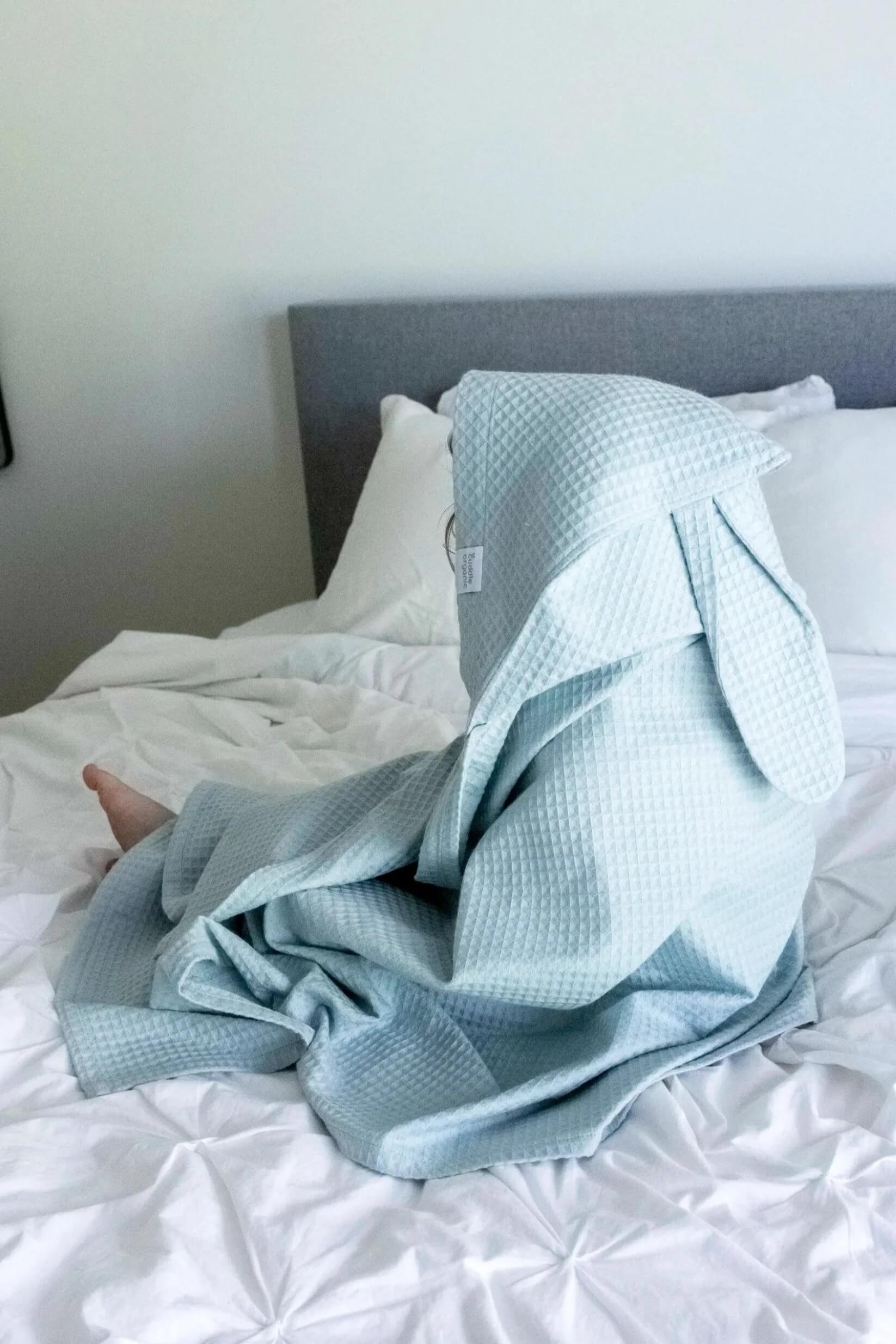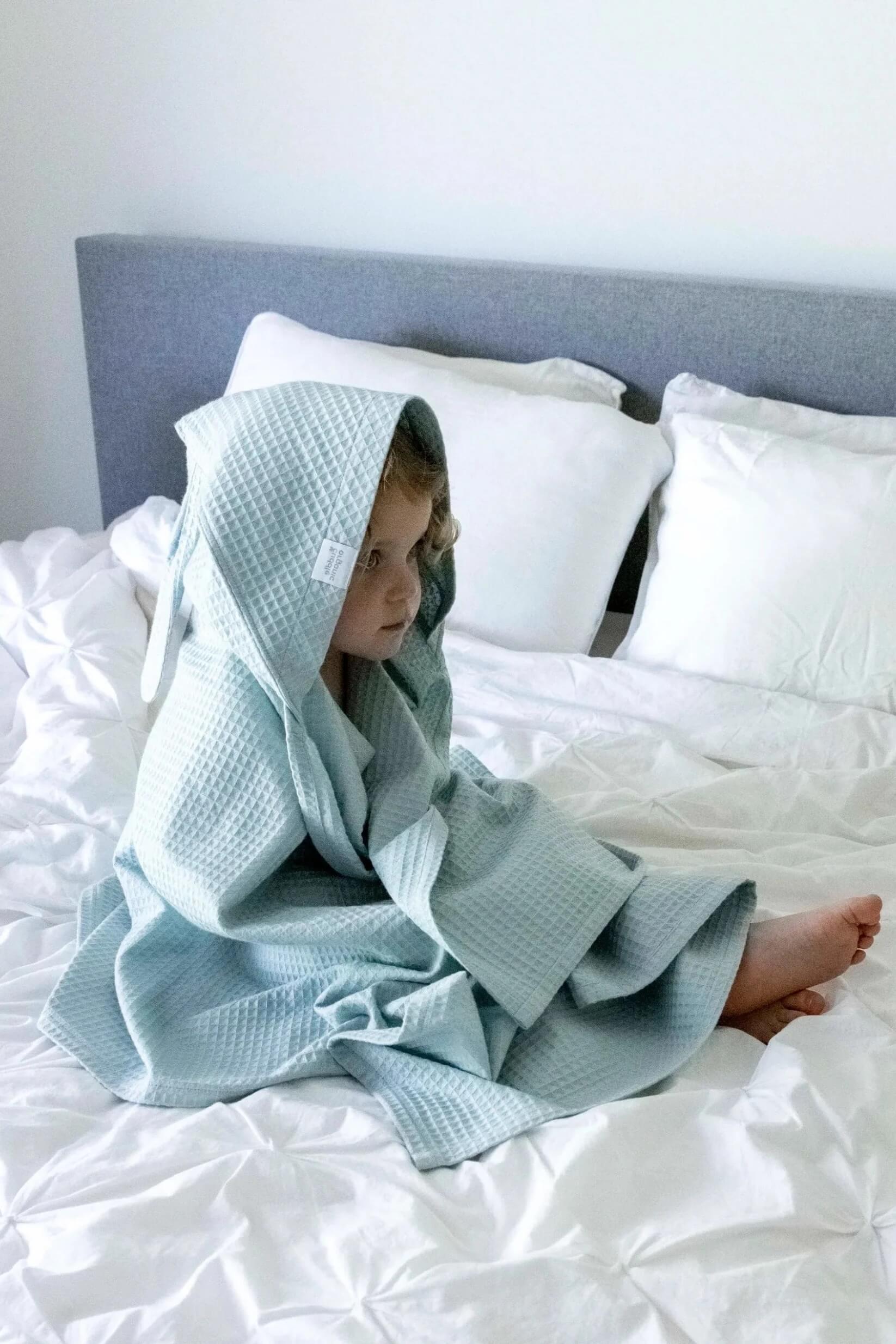 Mit diesem verspielten Hasenhandtuch für Kleinkinder und junge Kinder wird Badezeit oder Strandtag zum Vergnügen. Hergestellt aus zertifizierter Bio-Baumwolle ist es weich, atmungsaktiv und sanft zu empfindlicher Haut. Die Kapuze mit Hasenohren hält kleine Köpfe warm und trocken, und die großzügige Größe erleichtert das Einwickeln Ihres Kindes nach dem Schwimmen oder Baden. Eine wunderbare Geschenkidee, die Charme und Komfort vereint.